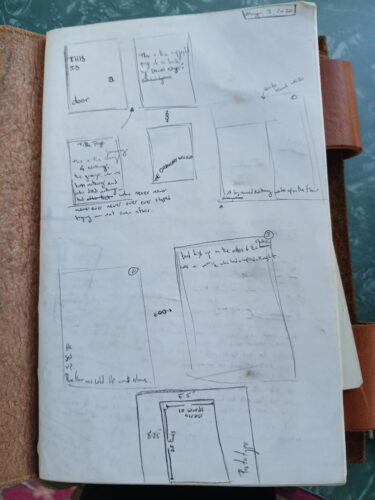 And with that outline, I went spread by spread. First, I would draw for myself a format for the text to take, based on the chunk of story I wanted to get across.
