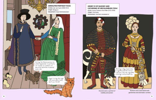 Dogs in Art: A Canine History of Art by Valeria Aloise & illustrated by Margot Tissot, translated from French by Jeffrey K. Butt